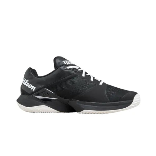 Wilson Bela Tour Black/White : semelle Vibram durable, amorti R-DST+, tige respirante et maintien latéral. Confort, stabilité et performance pour joueurs intensifs.